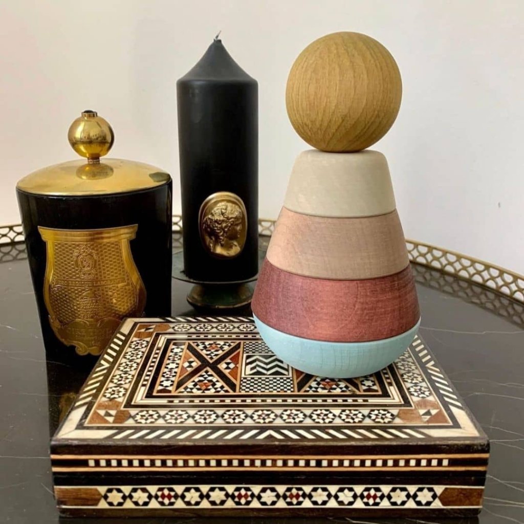 Skládací hračka je vyrobena ručně z bukového a javorového dřeva. Přírodní dřevo je dokonale leštěné, povrchově upraveno botanickými oleji a je velmi jemné na dotek.