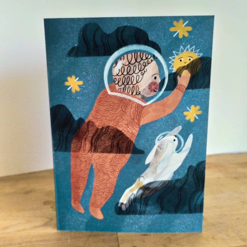 Krásné blahopřání k narození miminka s motivem neohroženého kosmonauta a jeho věrného přítele zajíce, kteří jdou objevovat vesmír. Přání můžete darovat rodičům novorozeného chlapečka i holčičky. Připište pár milých řádků. Nebo pokud nejste žádný spisovatel, předtištěný text vevnitř přání řekne vše za vás.