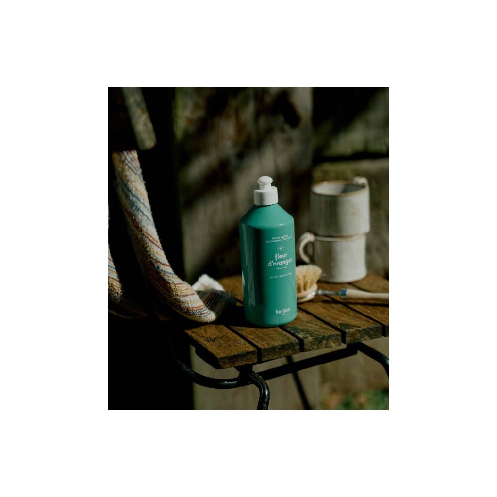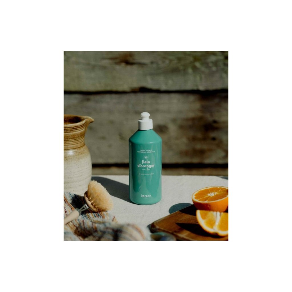 Mycí prostředek na nádobí Kerzon se vyrábí ve Francii z rostlinných olejů. Jeho ultra odmašťující složení dodává vašemu nádobí speciální péči a zanechá vaše ruce příjemně a aromaticky provoněné. Plastová lahev je vyrobena ze 100% recyklovaného domácího odpadu.