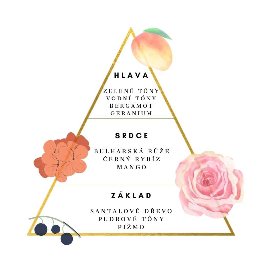 Dámská květinová toaletní voda s vůní bulharské růže, podmanivými květinami, mangem a gerania, které se postará o svěží závan.